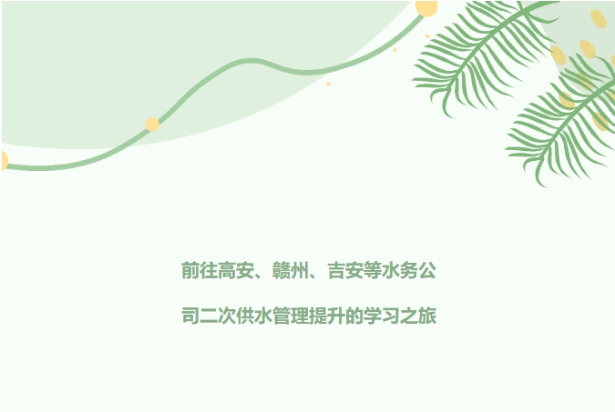 為進(jìn)一步提升新余市在二次供水管理方面的水平,從而促進(jìn)新余市二次供水統(tǒng)建統(tǒng)管,學(xué)習(xí)借鑒先進(jìn)地區(qū)的成功經(jīng)驗(yàn),由新余市水利局二級(jí)調(diào)研員胡振南,水資源科科長(zhǎng)彭海根、新余司法局立法科副科長(zhǎng)金銘、新余水務(wù)集團(tuán)有限公司常務(wù)副總經(jīng)理吳自才、總經(jīng)理助理李毅、江西情潤(rùn)水務(wù)科技有限公司總經(jīng)理何輝及業(yè)務(wù)部技術(shù)部人員共同組建了一個(gè)8人學(xué)習(xí)考察組,于2024年7中旬先后前往高安、贛州、吉安三地的兄弟單位水司進(jìn)行考察與交流學(xué)習(xí)。